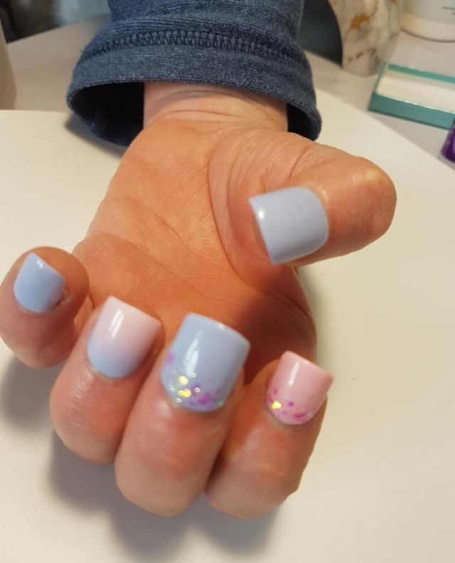 - Design : Dégradé de bleu et rose , rose et bleu uni et pailletés